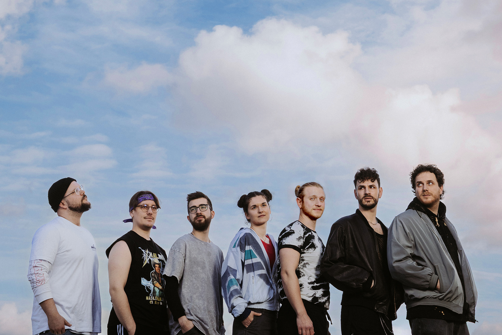 Die sieben Musiker:innen von Skyline Green spielen sich bei jedem Konzert das Herz aus dem Leib. Sie schreiben ihre Lieder unter anderem über Liebe, Katzen und internationale Solidarität.